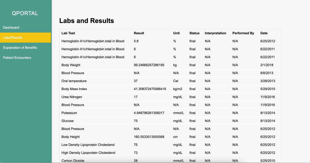 Small demo shows consumption of FHIR data in a vuejs single-page app. It shows the labs, encounters, and explanation of benefits.